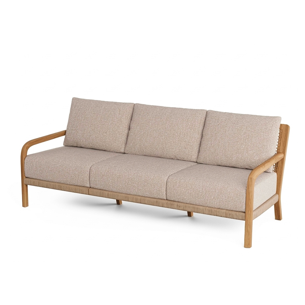Hazel Sofa combina belleza natural y durabilidad, lo que lo convierte en la opción ideal para espacios al aire libre. Hecho a mano de madera de teca y tejido sintético, garantiza una excelente resistencia a los elementos exteriores al tiempo que ofrece un toque de elegancia y calidez a su exterior.