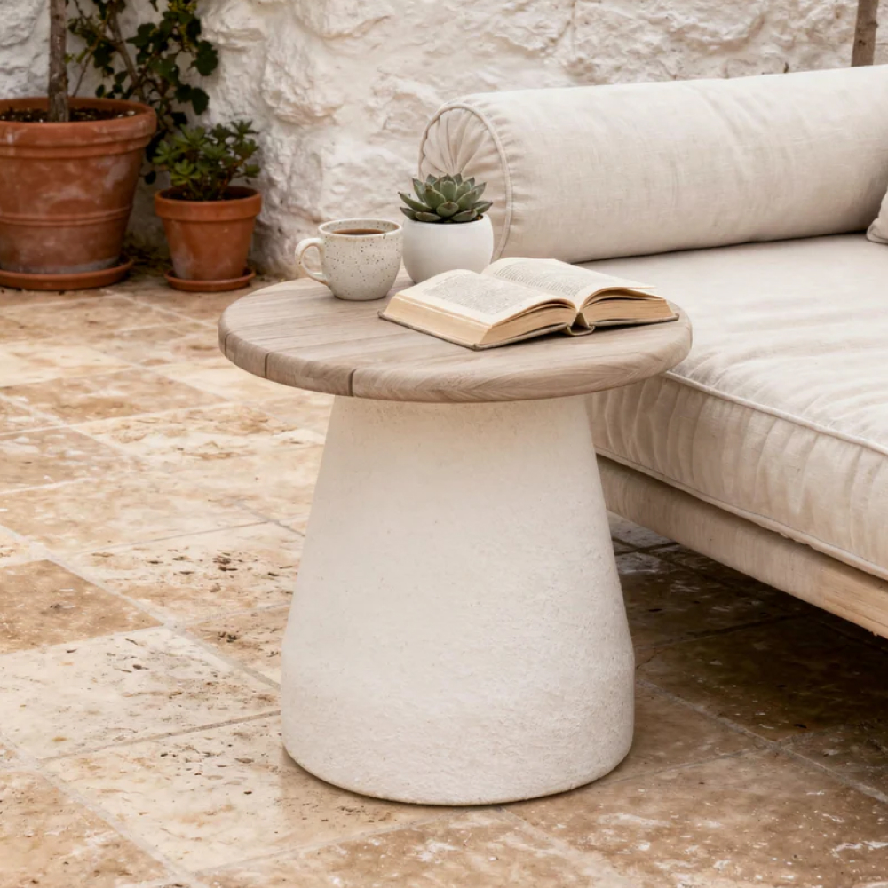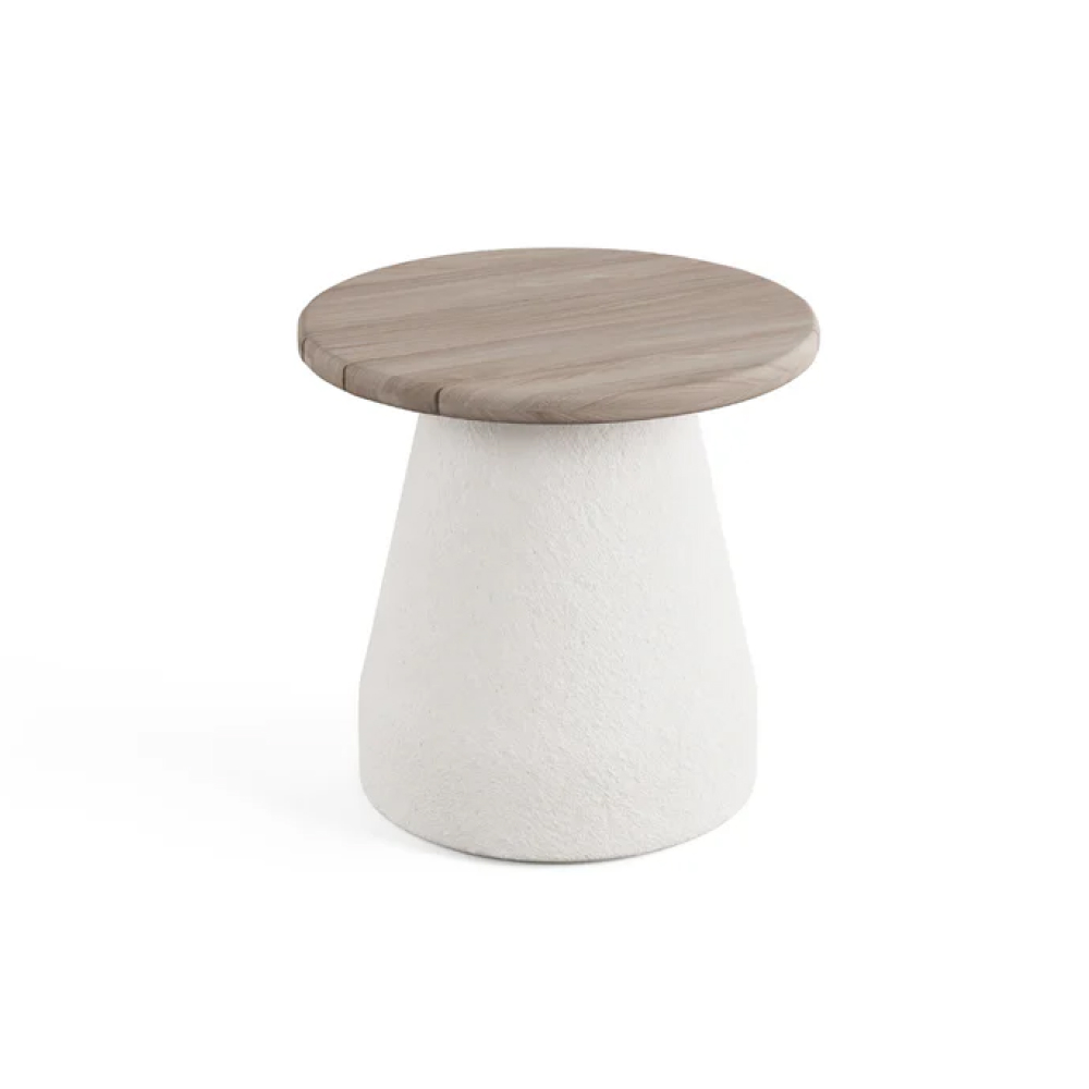 La mesa lateral Kano aporta la elegancia audaz y arquitectónica de la colección Kano a un accesorio perfectamente a escala. Con su funcional silueta redonda de 50 cm, esta mesa está diseñada para sentarse junto a su sillón, tumbona o sofá.